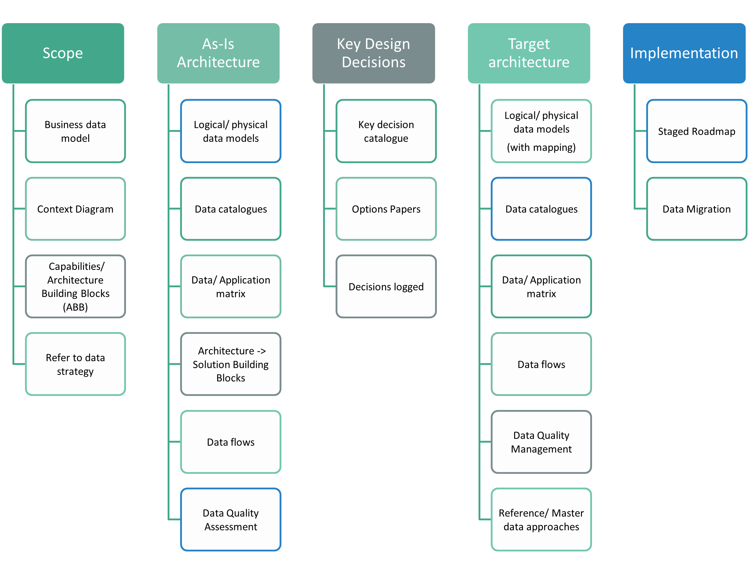 We will understand your As-Is data architecture, provide options to support your objectives, and develop a target state data architecture with you: