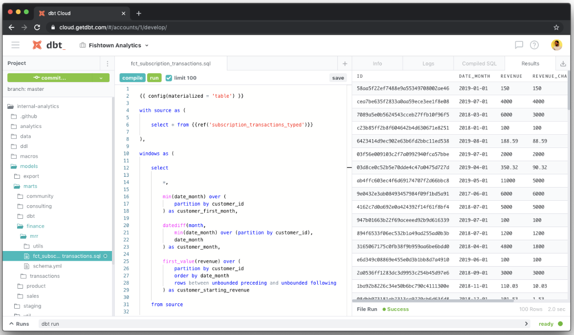 The data models are built using our own dbt templates, which allows us to rapidly develop and document data models.